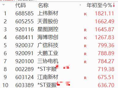 2025年近600只股票走出翻倍的行情,其中上纬新材以1821%的涨幅笑傲江湖,天普股份、星图测控、海博思创等紧随其后,这四只个股年涨幅均超1000%。