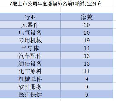个股按年涨幅前十排名
