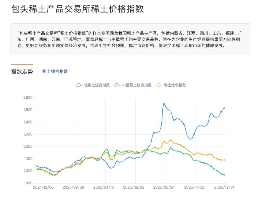 据包头稀土产品交易所(简称“稀交所”)1月9日消息,近日,稀土价格指数正式在稀交所官方网站、微信公众号及中国金融信息网、新华财经专业终端、新华财经APP等平台同步上线。