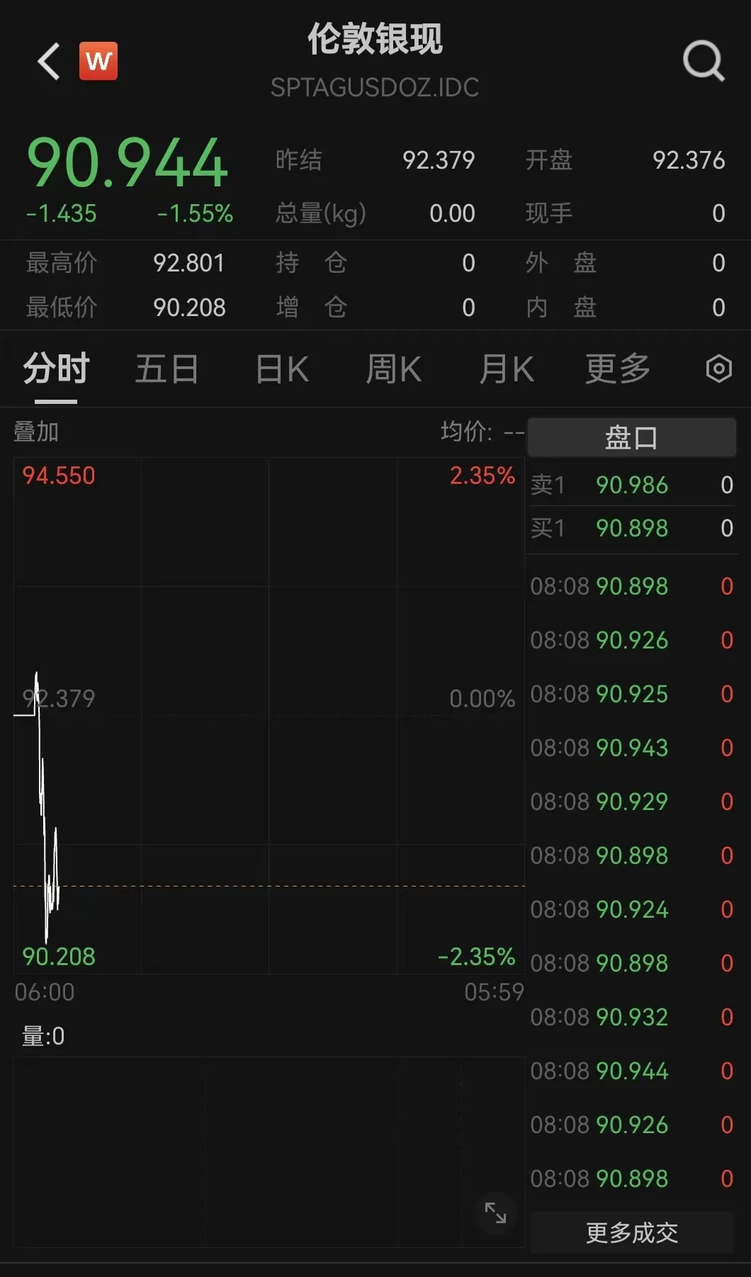 1月16日开盘,伦敦黄金、白银现货价格双双跳水,截至发稿,伦敦白银现货价格跌幅超1.5%。