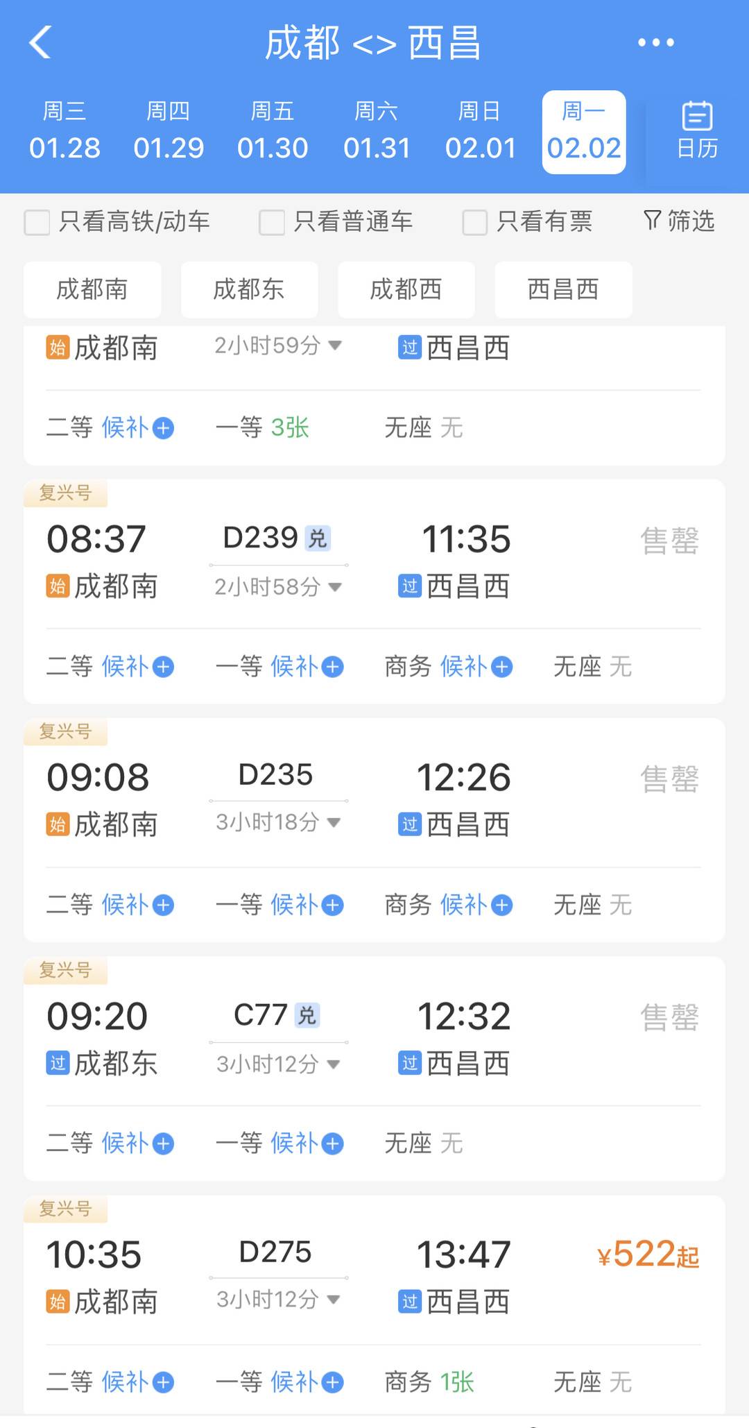 春运首日成都至西昌多趟列车全部席位车票均售罄