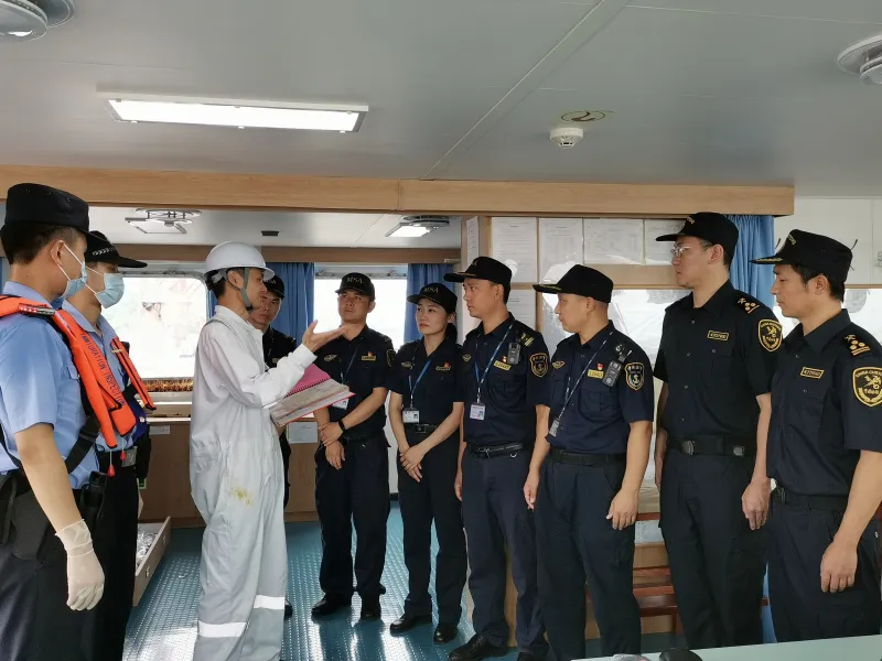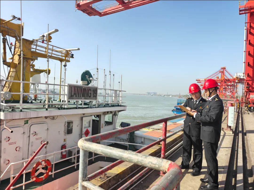 武汉新港海关关员在武汉阳逻港开展直航船舶监管