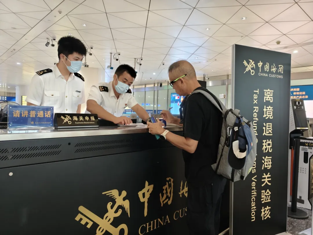 机场海关关员正在办理离境退税“即买即退”验核业务