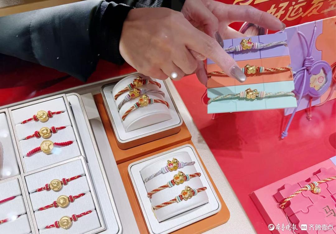 济南某周生生门店工作人员向记者表示,金价上涨后,小克重金饰更受青睐,尤其是各类联名款和“马年”元素产品。“现在年轻人买黄金不盲目追求大克重,更看重设计和寓意,一两克的挂坠、手链、转运珠,甚至不足0.1克的黄金挂件卖得最好。而且这些联名款大多是一口价,现在金价一天一个价,一口价产品反而让消费者觉得更划算。”