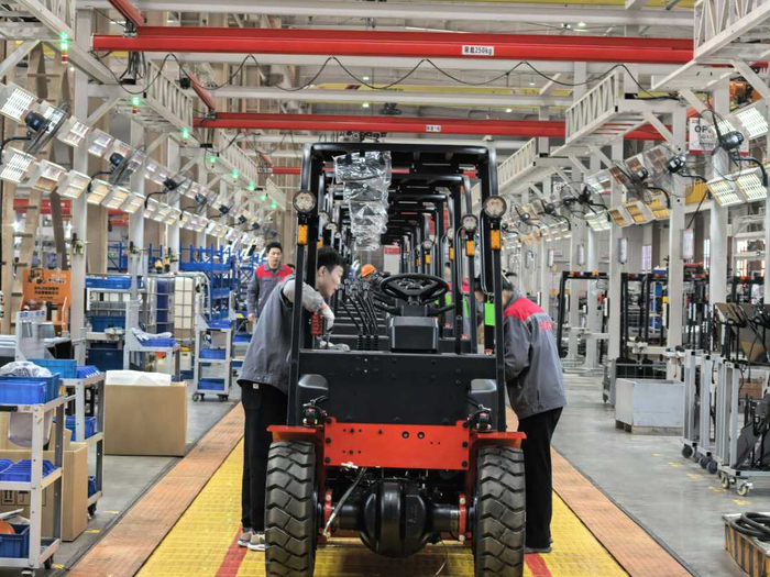 在位于湖北老河口市的湖北中力机械有限公司,工作人员正在解决叉车产品技术问题。随着出口规模扩大,该公司带动当地形成了完整的叉车产业链。本报记者柳洁 摄