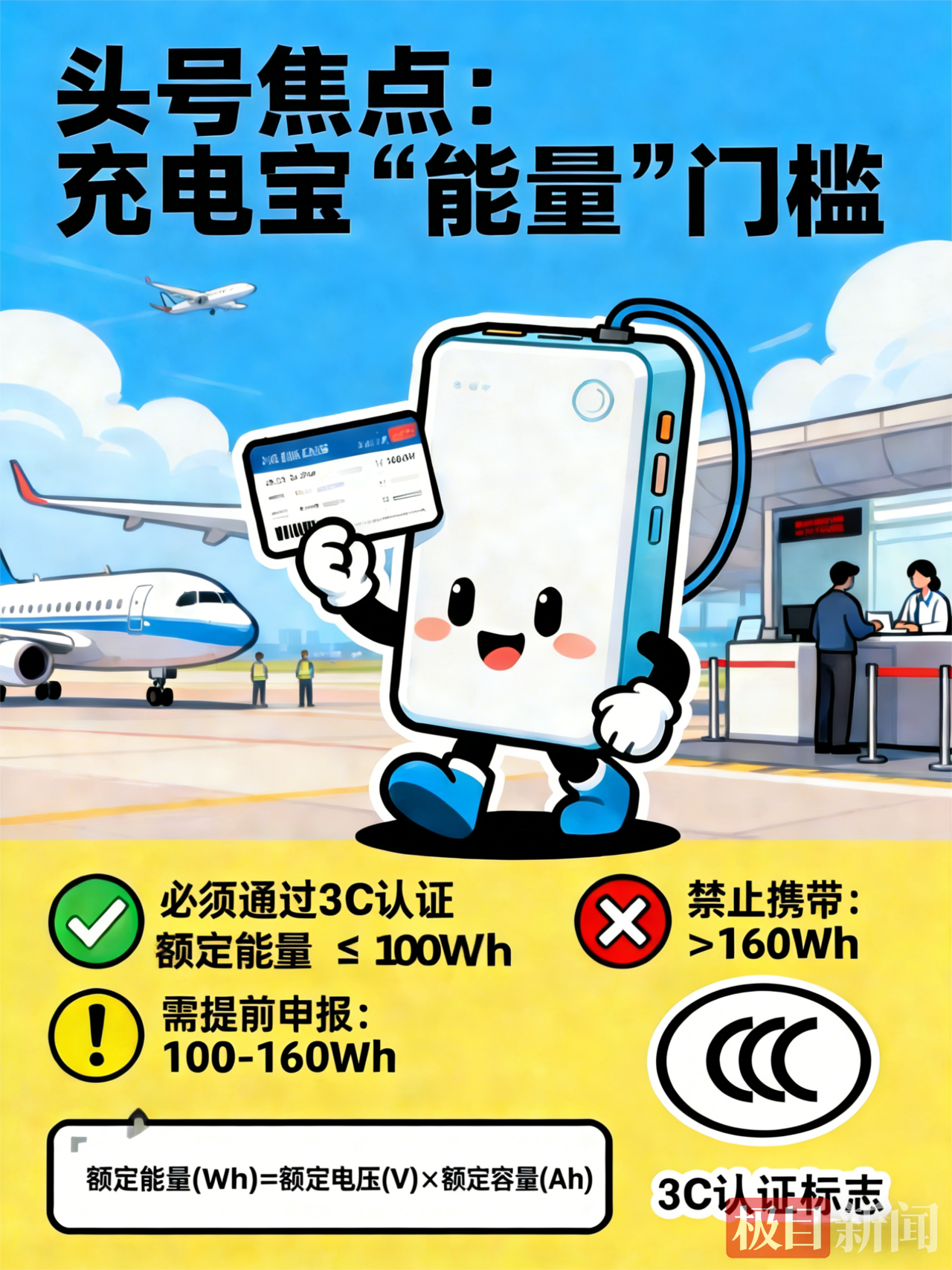 充电宝是航空安检的“重点关照对象”,其能否登机,核心在于已通过“3C”认证并符合“额定能量值”规定。