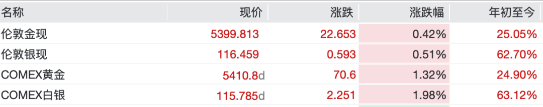 国际贵金属期货深夜巨震,黄金白银盘中跳水,一度回吐全部涨幅,最终普遍收涨,COMEX黄金、COMEX白银均涨超1%。截至北京时间1月30日7:00,黄金白银延续涨势。