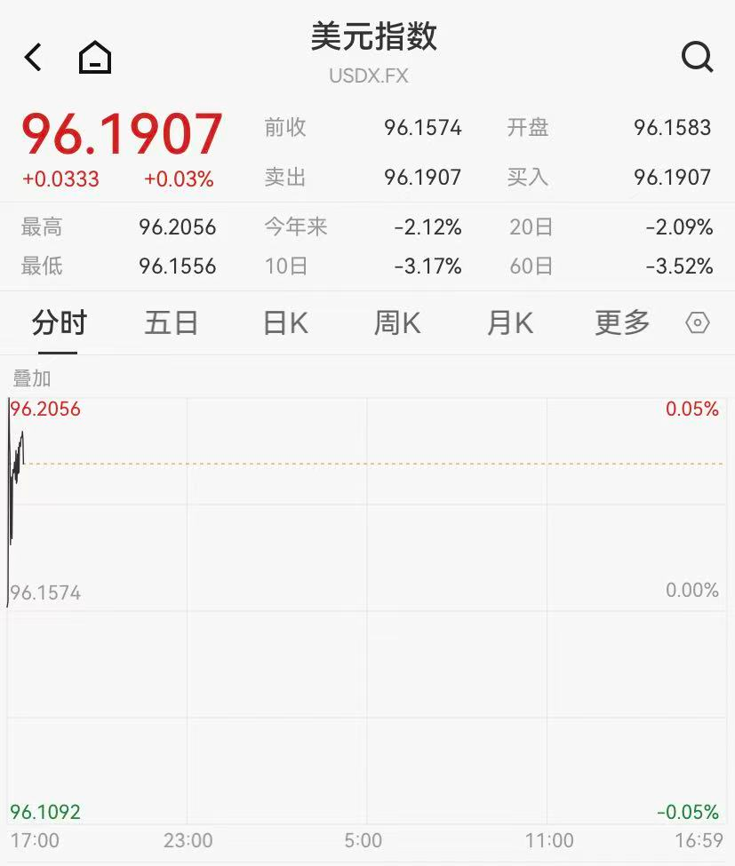 历经连日抛售,美元指数有回升迹象。截至北京时间1月30日6:30,美元指数涨0.02%报96.19。据新华社报道,“货币贬值交易”卷土重来,其影响超过贝森特先前发表的稳定美元汇率言论。“货币贬值交易”是指投资者担心美元购买力将长期下降而转向其他替代资产。
