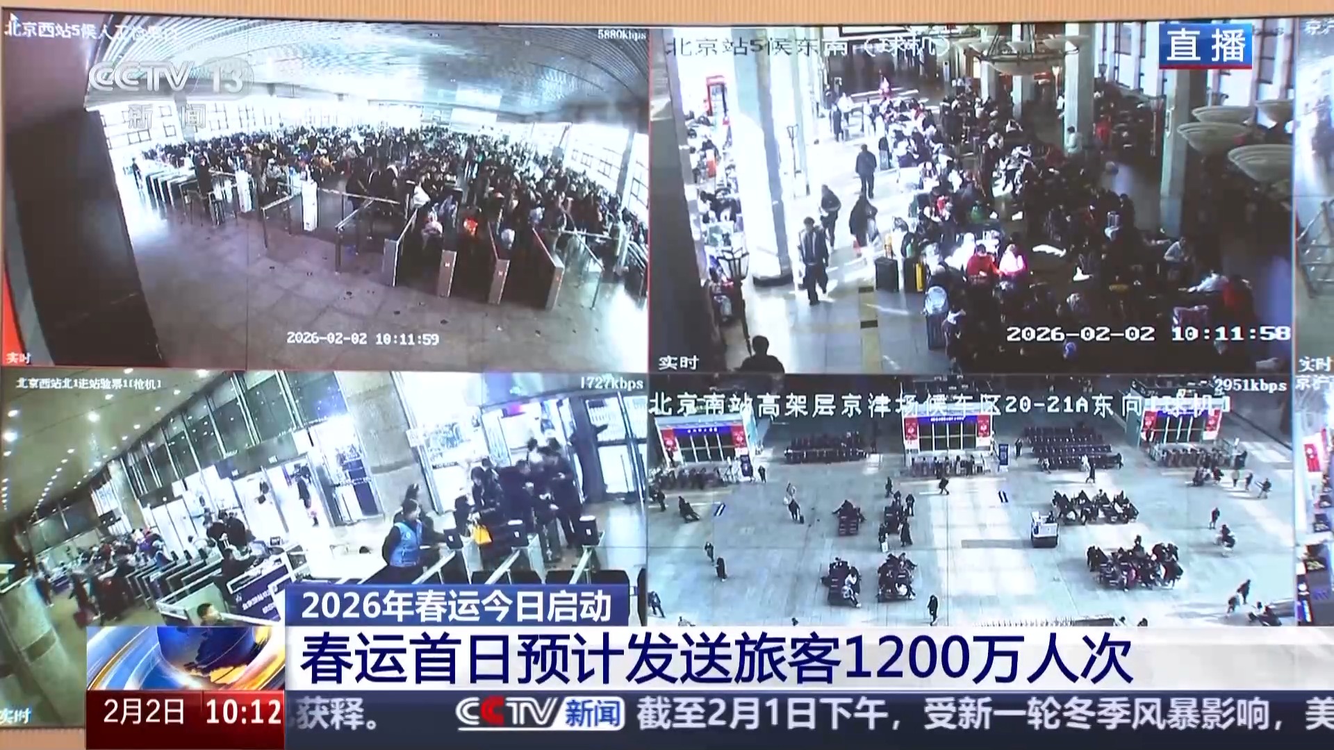 根据国铁集团最新数据,春运首日预计发送旅客1200万人次。2026年春运期间,也就是从今天开始,直到3月13日,全国铁路预计发送旅客5.4亿人次,日均发送1348万人次,同比增长5%。