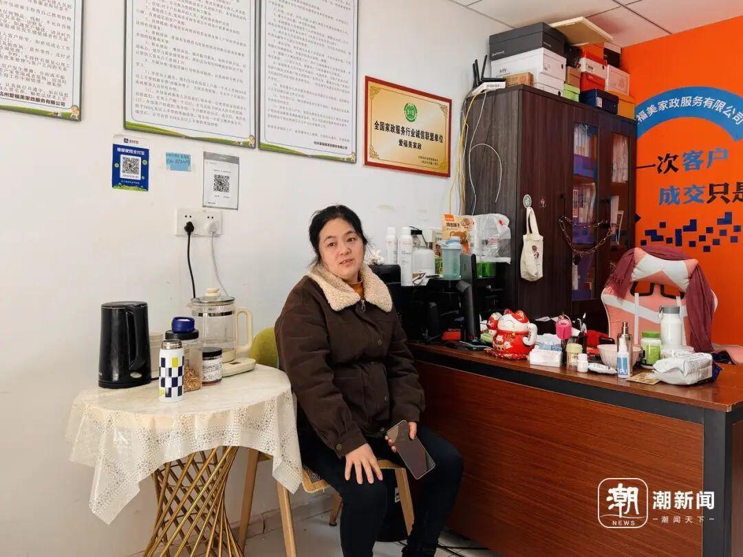 在不远处的另一家家政门店,潮新闻记者遇到了正在短暂休息的周红。今年五十岁的她来自安徽,脸庞带着常年劳作的质朴感。“今年是第一年在杭州过年。”她有些腼腆地笑了笑,手里捧着一个保温杯。