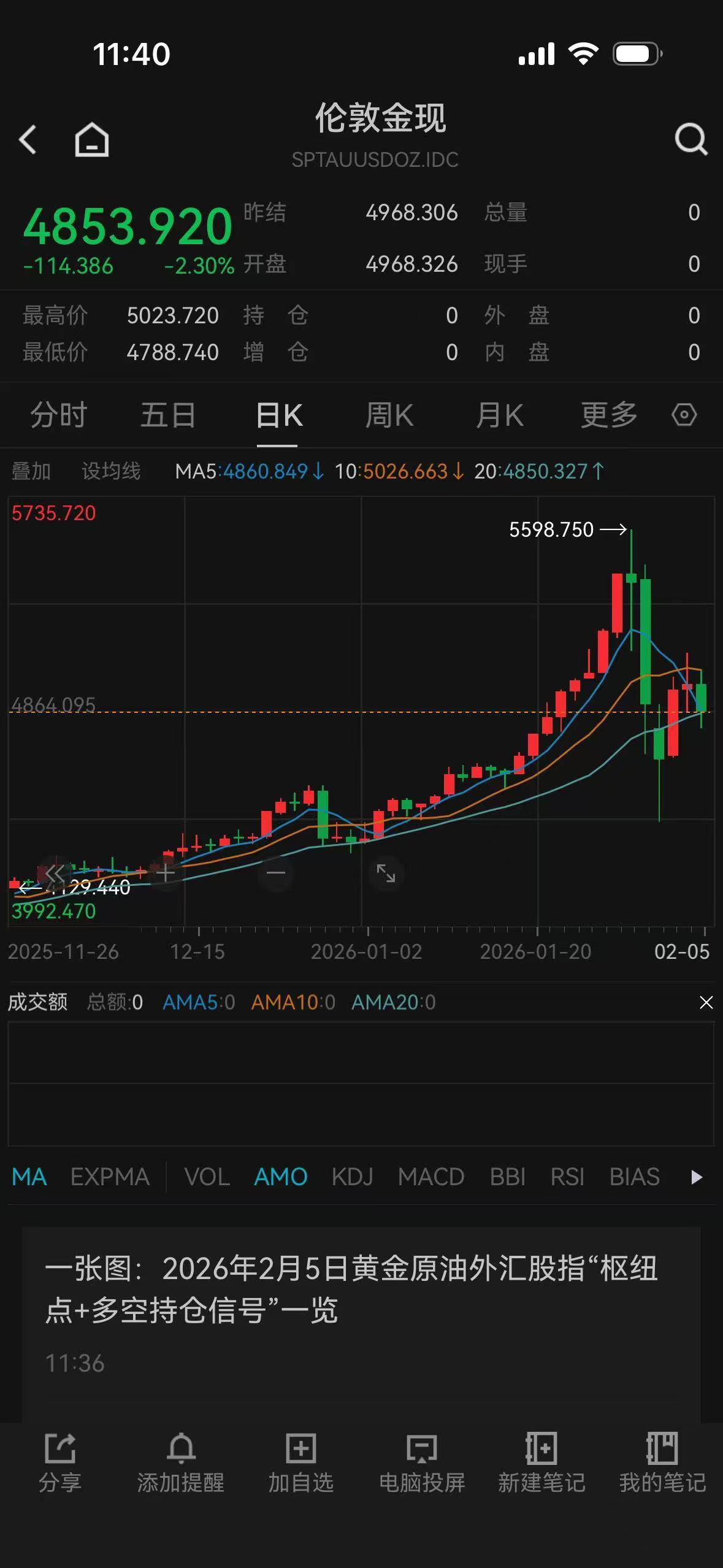 刚刚,现货黄金跌2.3%,交投于4830美元/盎司附近。