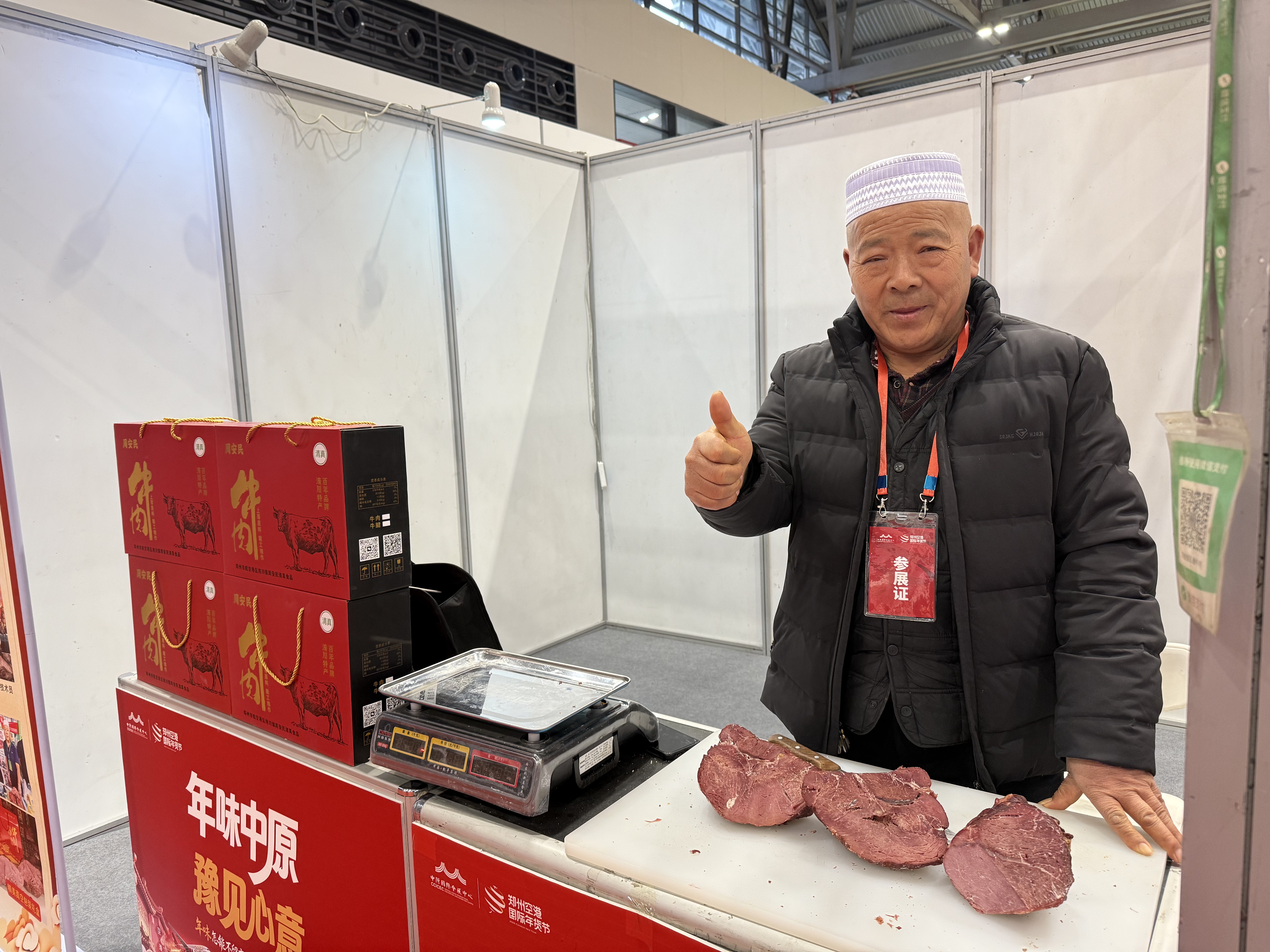 “我们带来的周安民五香牛肉质嫩筋道、色佳味鲜,被评为航空港区非物质文化遗产。”周安民自豪地说,“这几天备的货不到收摊就能卖得七七八八,微信上都是回头客的点赞!好几位客人临走还特地留了联系方式,说这味道记住了,以后要常来。”