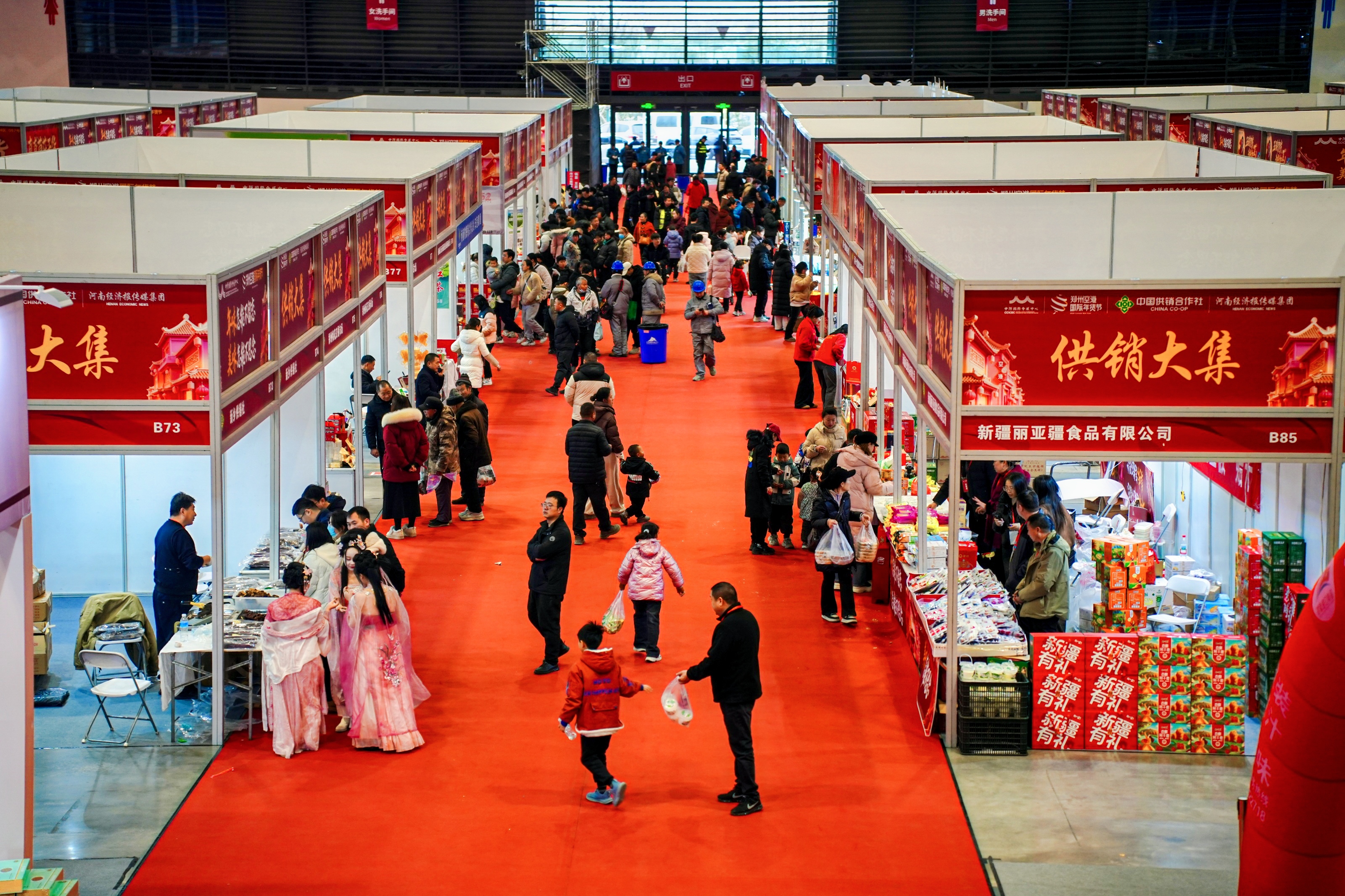本次年货节汇聚了200余家参展企业、设置近400个特色展位。同时,主办方开放了3500个免费停车位,设置从紫荆山至港区的专属免费接驳车,为市民提供便利的交通选择。