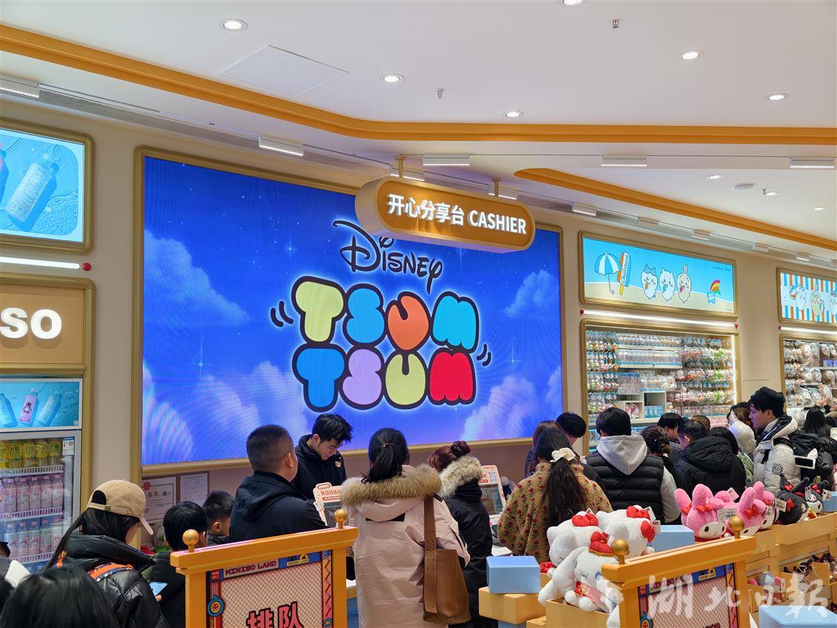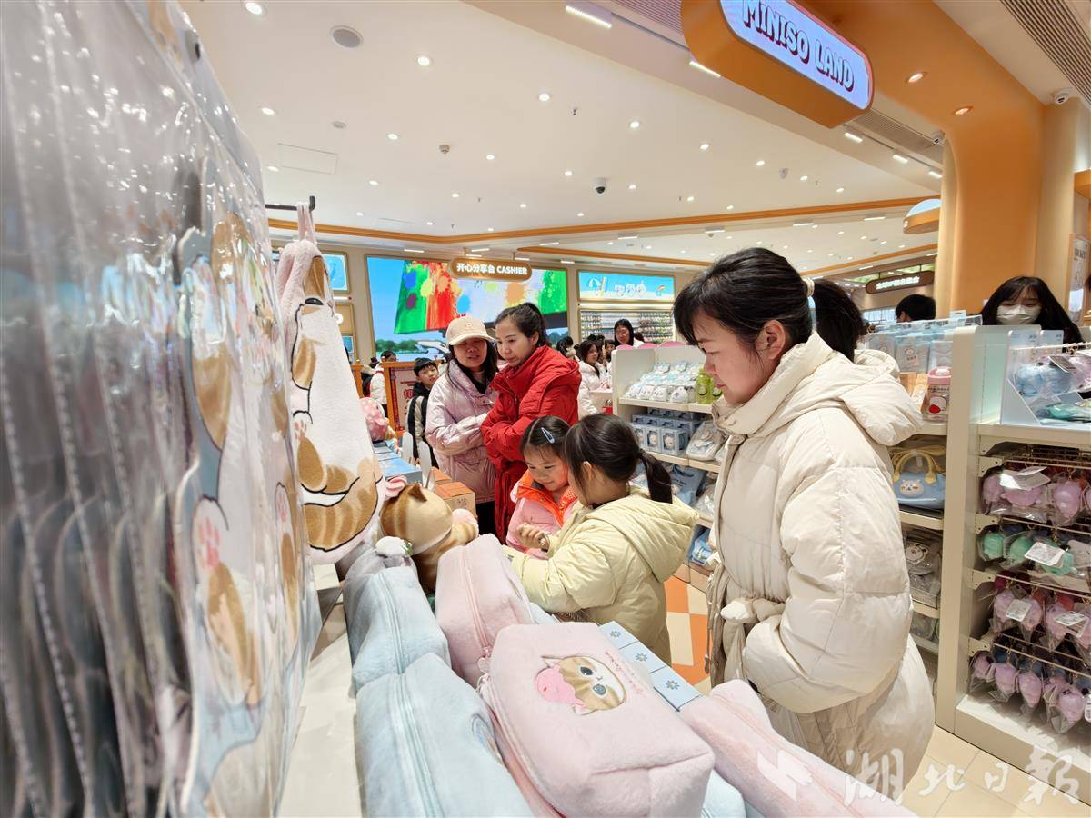“Labubu的毛绒新品昨天刚上架,今天就卖空了!”飞社长门店主理人谢逸飞一边整理货架一边说。他告诉记者,春节前后客流是平时的两三倍,“学生放假了,有时间出来。不少人从宜昌、荆州,甚至长沙专程赶来。”