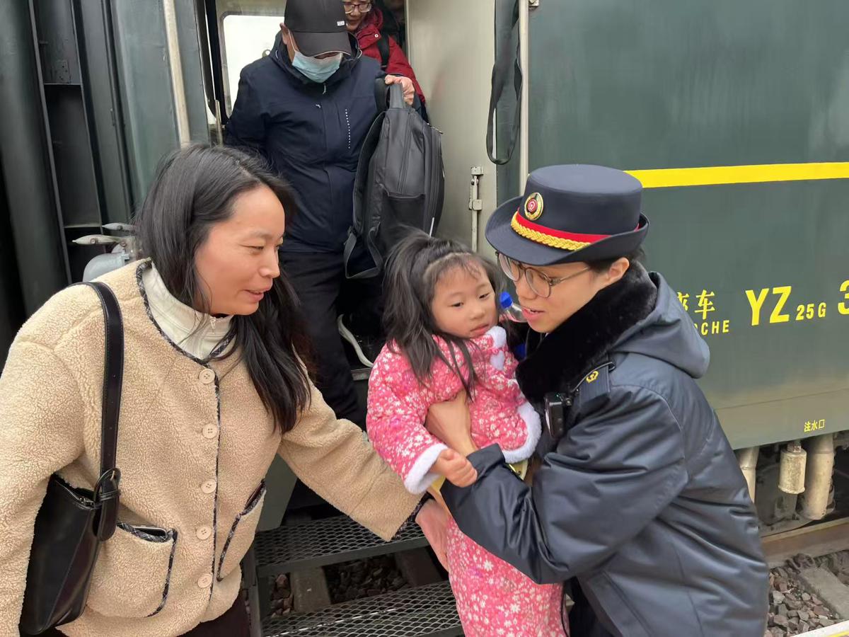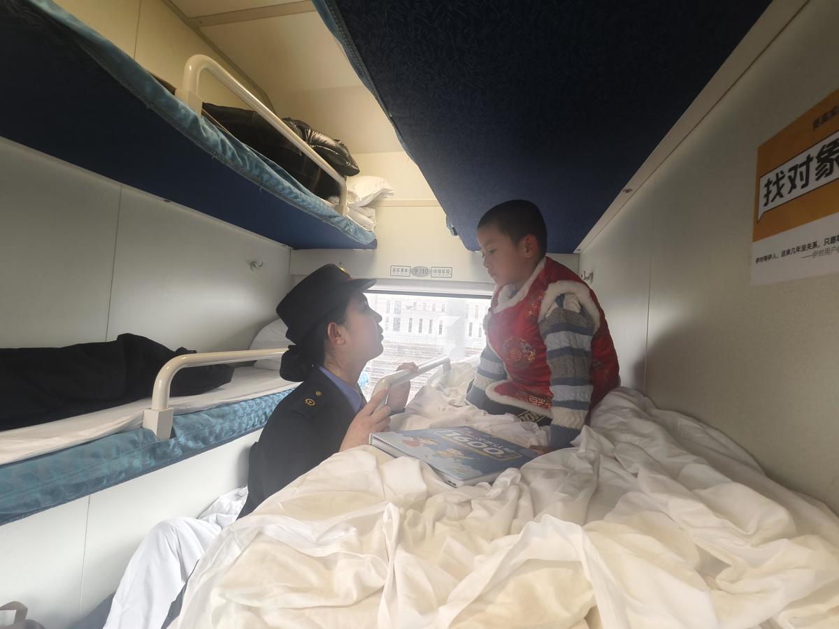 来自黑龙江绥化的姑娘宁晓凤,带着白山黑水滋养的热忱,在车厢里为小旅客递上绘本,轻声讲述着旅途的故事。她的笑容像冬日暖阳,驱散了旅途的疲惫,让小小的车厢里满是温馨。