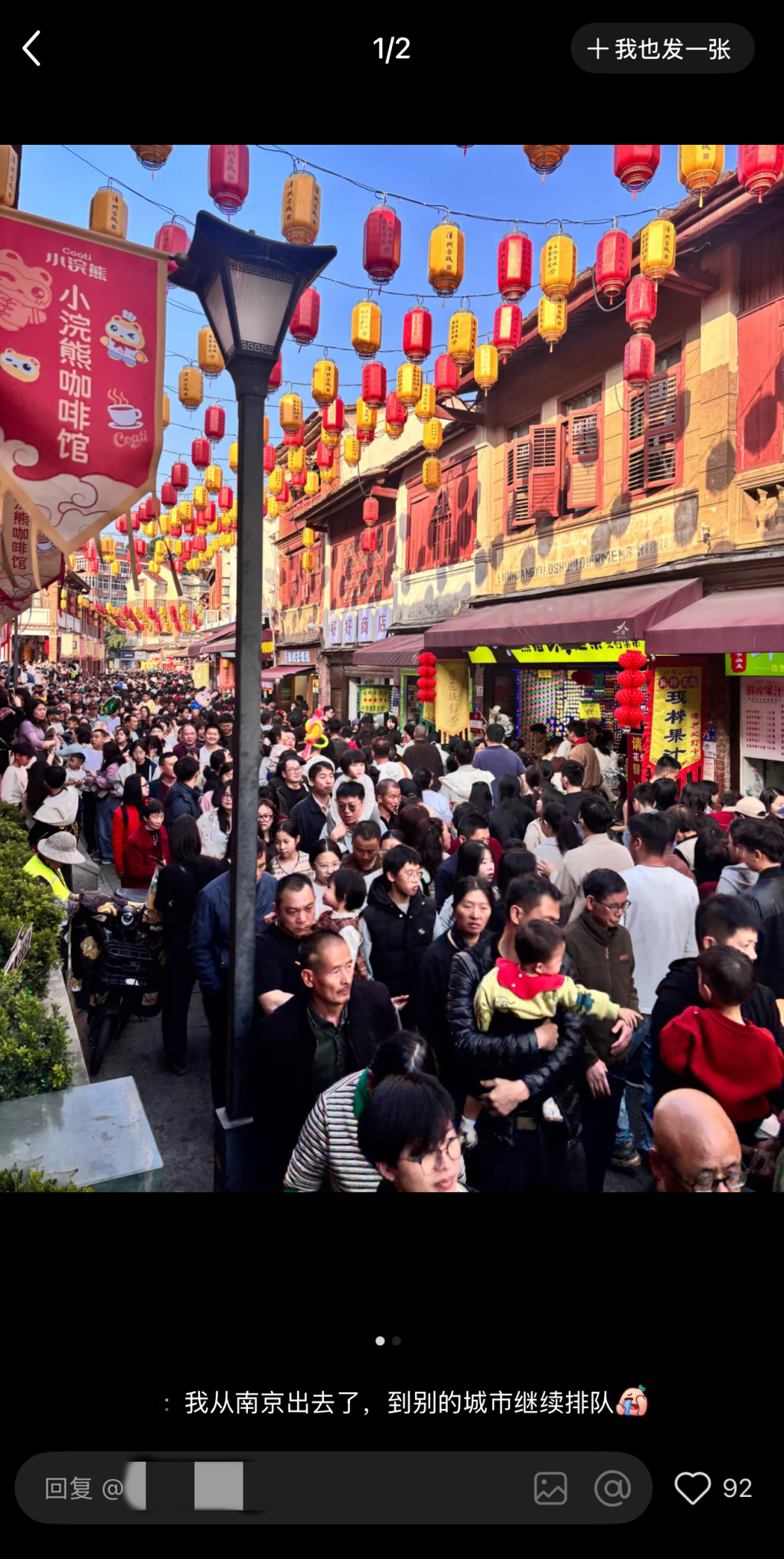 还有网友称自己所在的“巴掌大”的古镇“居然也能人爆满”,直呼“太神奇了”。