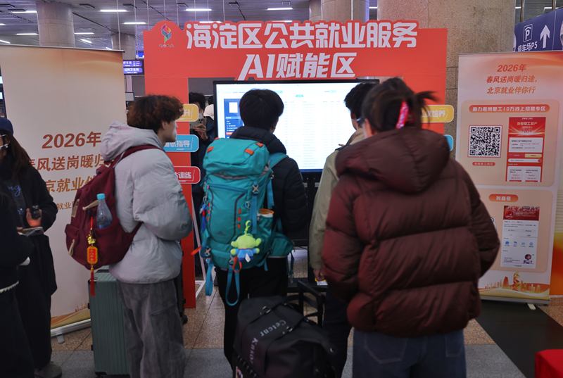 来自河南安阳的王泽昊等三位辽宁理工学院大学生,在北京中转返校途中,偶遇火车站现场就业服务活动,便提前来找找合适的实习岗位。就读传媒相关专业的王泽昊,对现场设置的AI服务专区格外感兴趣。他表示,借助大数据和人工智能平台,可以快速浏览海量招聘信息,实现多渠道投递简历,更高效地找到适合自己的岗位。