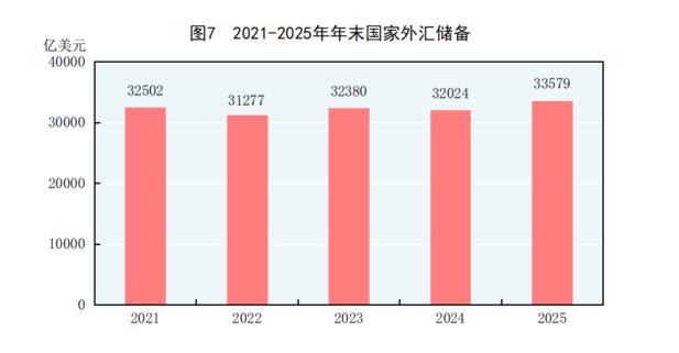 年末国家外汇储备33579亿美元,比上年末增加1555亿美元。全年人民币平均汇率为1美元兑7.1429元人民币,比上年贬值0.3%。