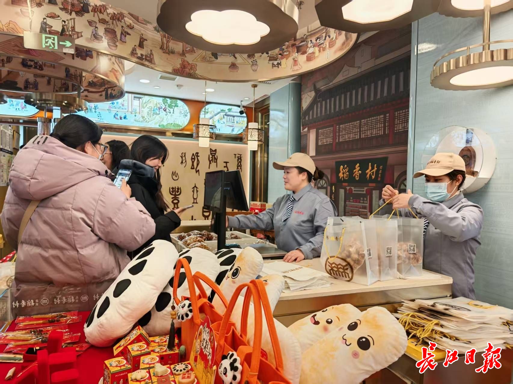 长江日报记者在现场看到,百年义利也在隆福寺开出新店,现烤果子面包、维生素面包香气四溢,搭配“百年义利”帆布包、点心礼盒,新潮与传统风味混搭。