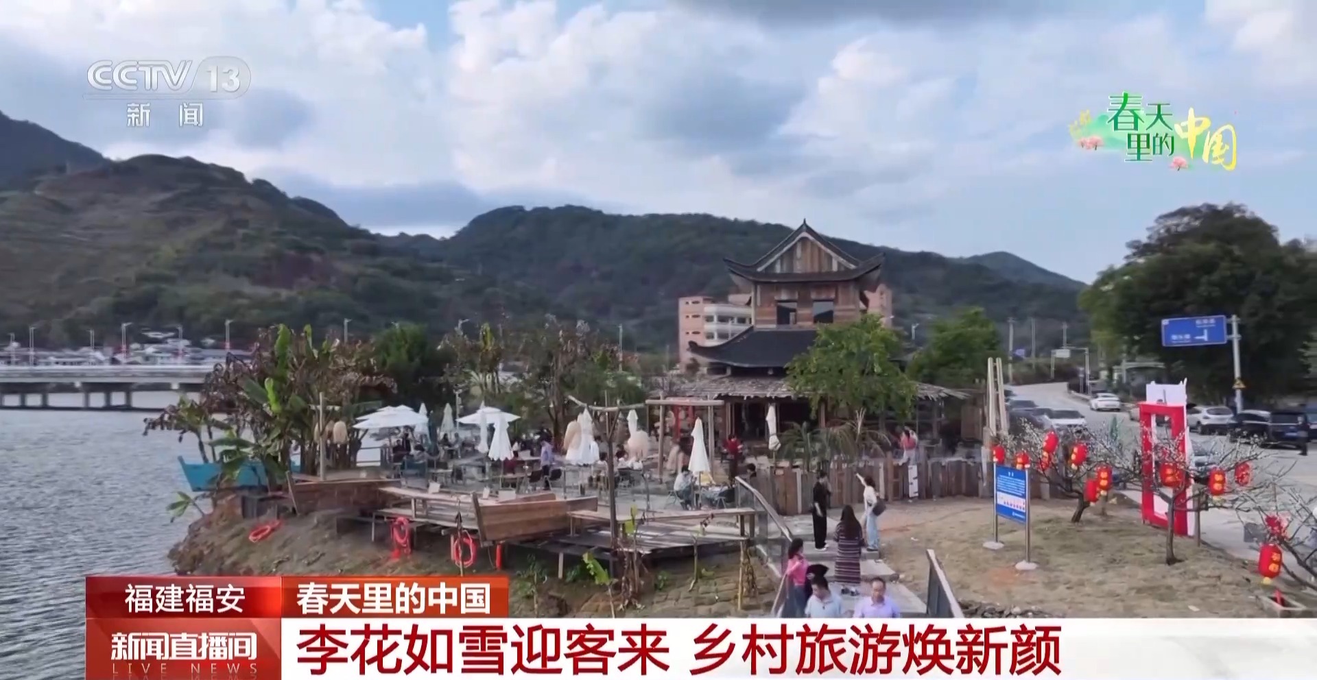 在福建宁德福安市潭头镇棠溪村,漫山遍野的芙蓉李花沿着溪流、顺着山势,层层叠叠铺展开来,将整片山野染成了一片雪白。游客们三五成群,漫步在亲水景观栈道上,穿行于花海间,不时驻足拍照。
