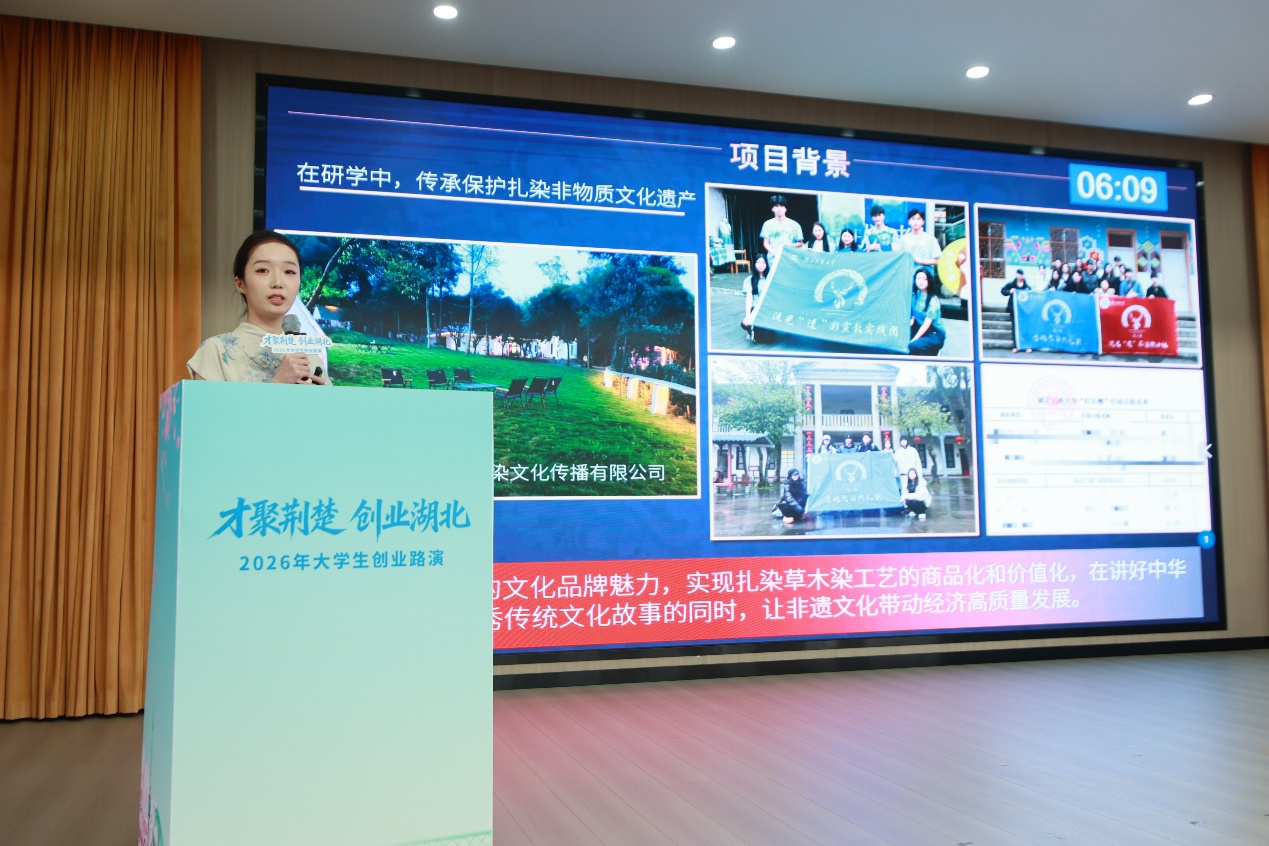 来自华中科技大学、中国地质大学等高校的8个“金点子”项目依次登台路演,涵盖了人工智能、生物医药、文化创意等多个领域。数易得地学数据流通生态构建者、多模态图像数据处理与效率测算平台等项目,在技术研发、应用场景探索方面取得快速推进,展现出高校科技成果落地转化的巨大潜力;“鹿小染”——中国巴楚非遗传承“摩尼扎染”产业的践行者项目,让古老扎染技艺焕发新生;“锦绣山‘核’”——西藏富硒核桃产业开拓者项目,通过产业赋能助力乡村振兴,充分展现了大学生创业者的创新智慧,彰显了新时代青年的使命担当。