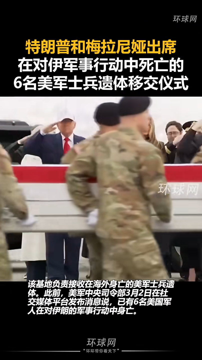 据环球网援引法新社等外媒消息,美国总统特朗普7日出席6名美军士兵的遗体移交仪式。