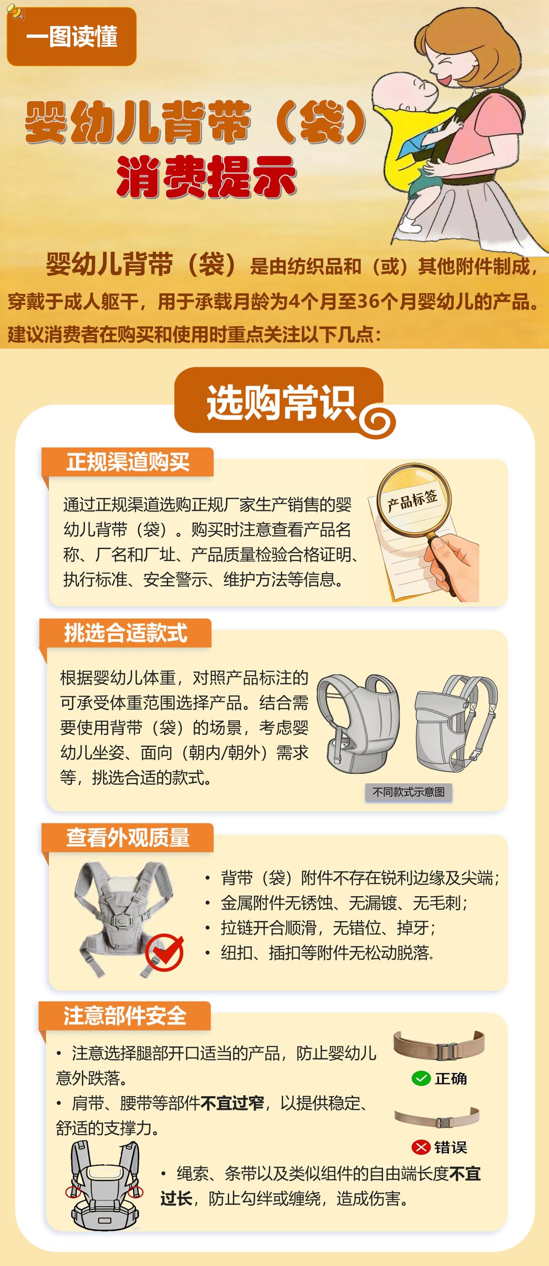 “3·15”国际消费者权益日来临之际,市场监管总局发布老人鞋和婴幼儿背带(袋)2类产品消费提示,旨在通过介绍产品选购和使用方面的常识,帮助广大消费者科学购买和使用相关产品,筑牢安全防线。市场监管总局将持续聚焦公众关心的重点消费品,加强质量安全监管,切实维护消费者合法权益。