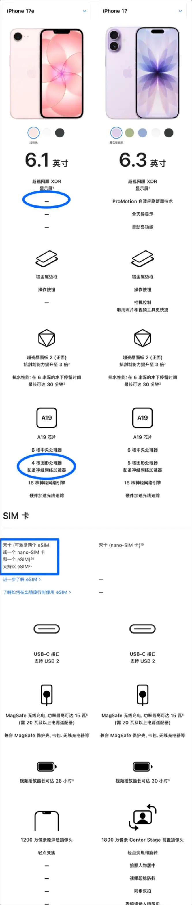 看下它的配置,对比较iPhone17还是有比较大的差别的: