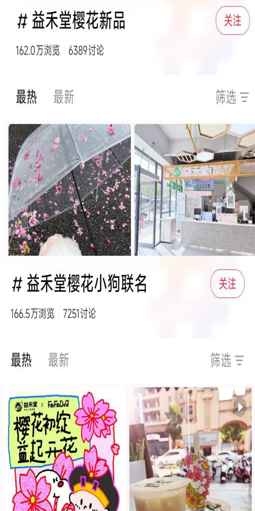 社交平台上,小红书#益禾堂樱花新品##益禾堂樱花小狗联名#话题阅读量突破328万;抖音#益禾堂樱花新品#相关话题视频播放量突破4700万次。