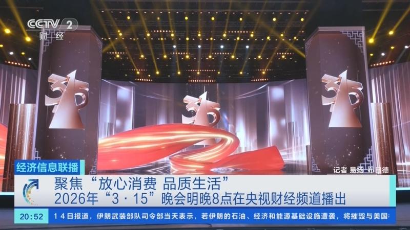中央广播电视总台2026年“3·15”晚会将于今日20点,在央视财经频道现场直播。目前,晚会已准备就绪。今年的晚会有哪些亮点和看点?