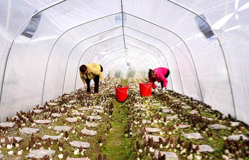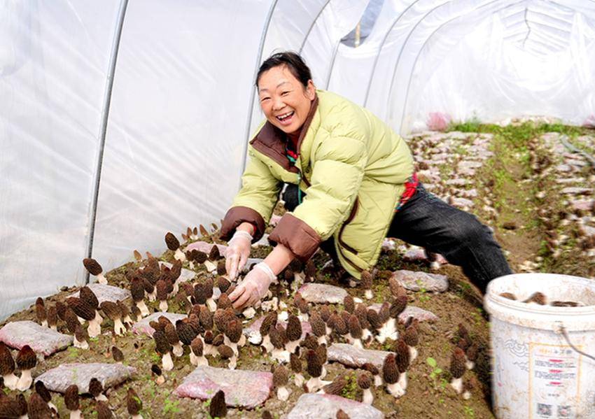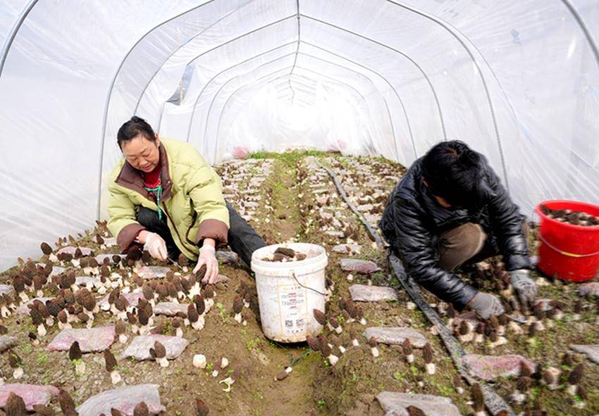 在羊肚菌种植基地,马良镇紫阳村村民吕刚梅一天能采摘百来斤菌菇,收入稳定;村民杨帮秀自正月初七上岗以来,半个多月已通过务工收入2000多元,脸上挂满了丰收的喜悦。