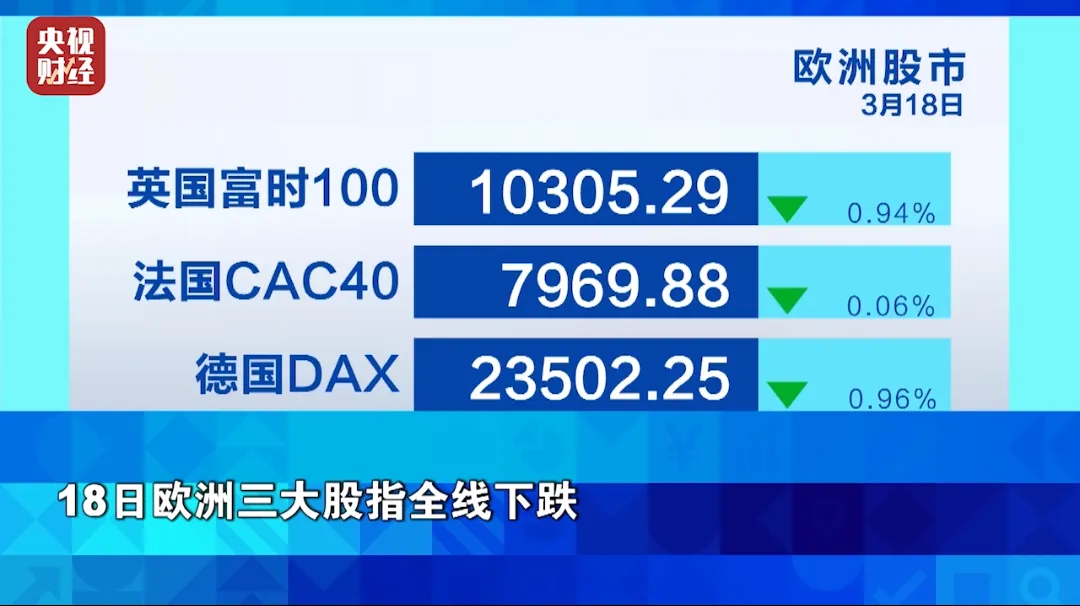 18日欧洲三大股指全线下跌