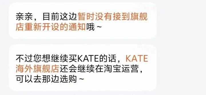 值得注意的是,此次宣布闭店的,仅为KATE抖音官方旗舰店与天猫官方旗舰店,而天猫海外旗舰店、京东旗舰店、京东自营旗舰店目前均在正常运营中。