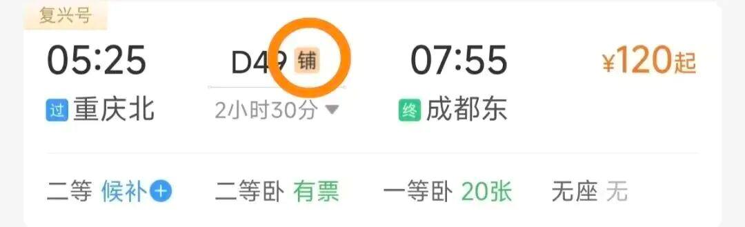 标注“铺”字:代表可以在线选择该趟列车中卧铺车的席位。