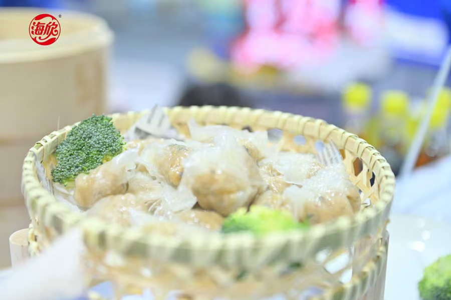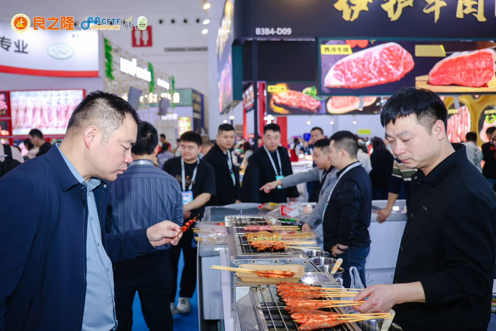 安井食品、惠发食品、良之隆、上海光明肉业等行业标杆企业,集中展示旗下创新产品;高金食品、味知香食品、成都希望食品、好事多食品等肉类食材企业,带来午餐肉、梅菜扣肉、扇子骨、小酥肉、肥肠、鸡排、烤鸡等爆款食材,凭借新鲜品质和高性价比成为全场焦点,吸引采购者争相品尝,展台后洽谈合作的身影络绎不绝,合作意向不断达成。