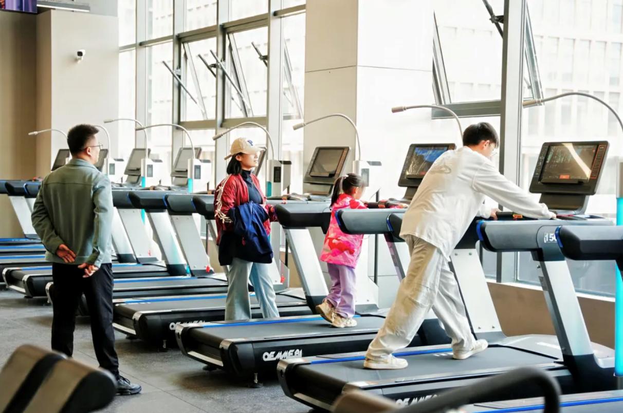 △3月28日,雄安·电建智汇城奥莱健康体育运动中心正式启幕,市民体验运动器械。