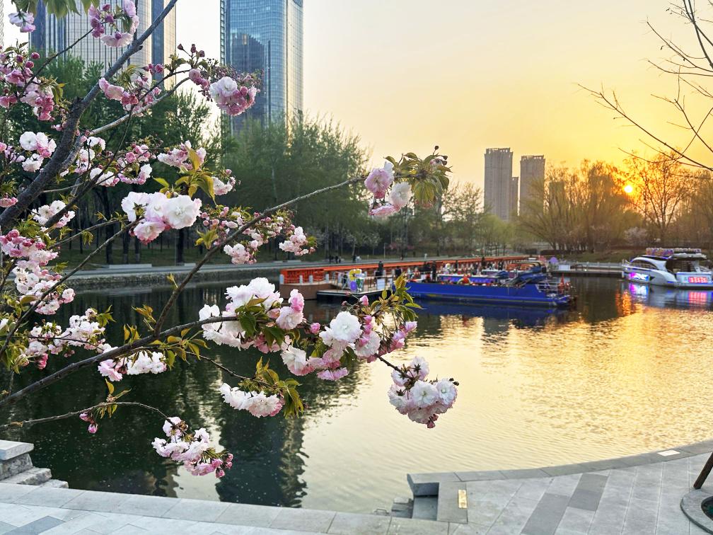 刚刚过去的清明假期,北京北小河成为热门打卡地。河畔樱花如云似霞,粉白相间的花枝垂向碧波,摇橹船慢悠悠地穿行在花影之间,偶有花瓣拂过游人脸颊,颇有“船在花中行,人在画中游”的韵味。