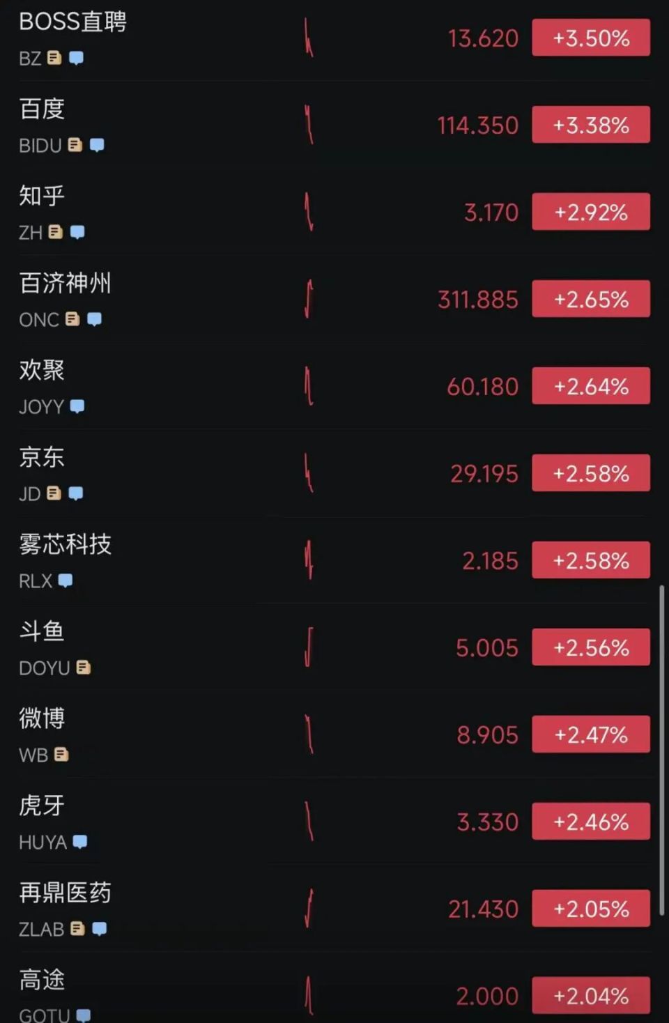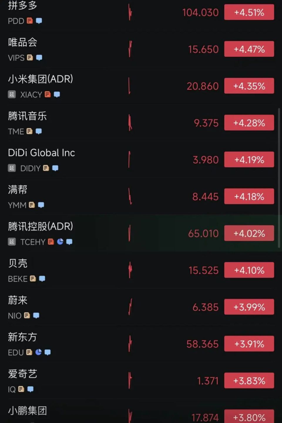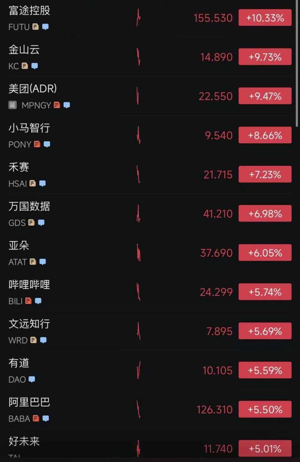 热门中概股集体大涨,纳斯达克中国金龙指数一度涨超4%,截至发稿,涨3.66%。富途控股涨超10%,小马智行涨超8%,金山云涨超9%,美团(ADR)涨超9%,阿里巴巴涨5.5%,哔哩哔哩涨超5.7%。