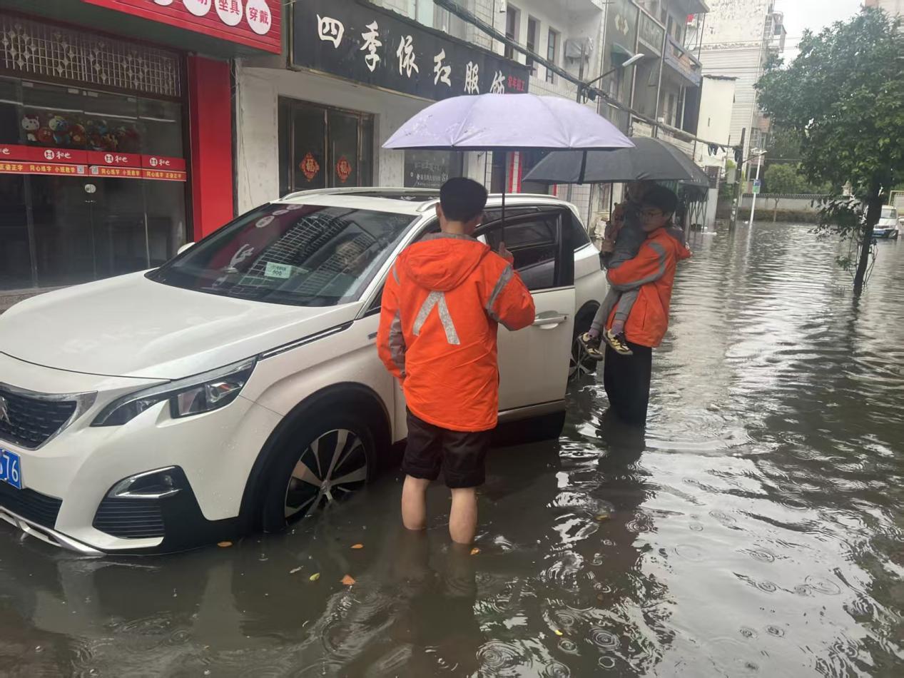 暴雨内涝场景中,黄陂区盘龙四路积水严重,多辆车受困。理赔员周臣冒雨蹚水赶赴现场,安抚车主情绪、拍照取证、核定损失,全程指引客户完成理赔流程,还协助推移车辆、联系拖车,最大限度减少车主损失,彰显责任担当。