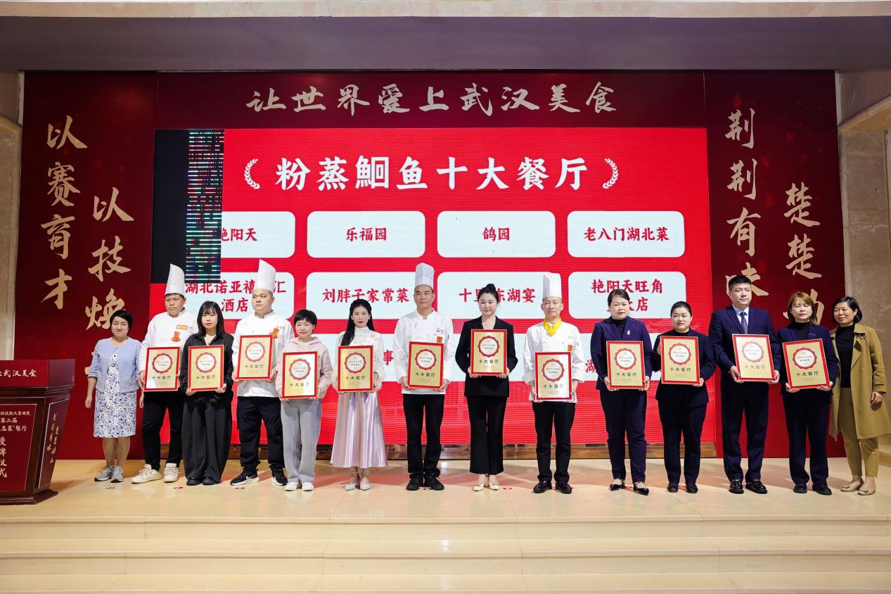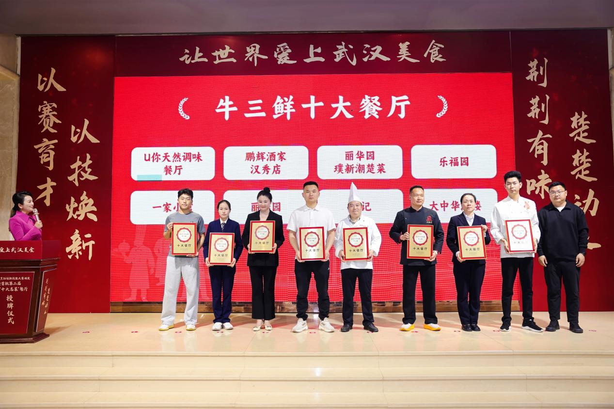 “多年以前,武汉的餐厅总是以请到香港、广州、上海的厨师为傲。但现在,我们介绍本地餐厅时,就会自豪地推荐‘正宗楚菜’‘地标楚菜’‘精致楚菜’。”授牌仪式上,武汉餐饮业协会会长刘国梁动情地说,2025年蛇年春晚,武汉首届“十大名菜”“十大名点”以长桌宴的形式惊艳亮相;2025年武汉的漂亮饭火爆全国,成为北上广深等一线城市排队消费的餐厅。楚菜正强势出圈,从湖北本土逐步向北京、上海、广州、深圳、杭州等一线城市及省会城市渗透。