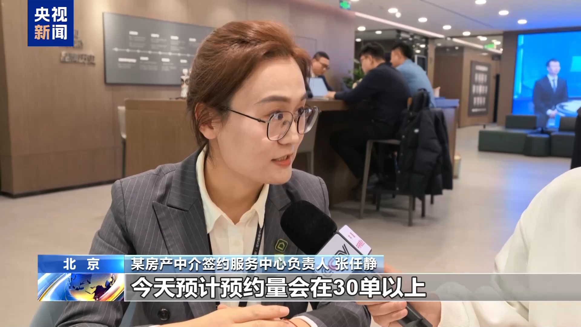 某房产中介签约服务中心负责人张任静:今天预计预约量在30单以上,周末人比较多,会是今天这种状态的2到3倍。