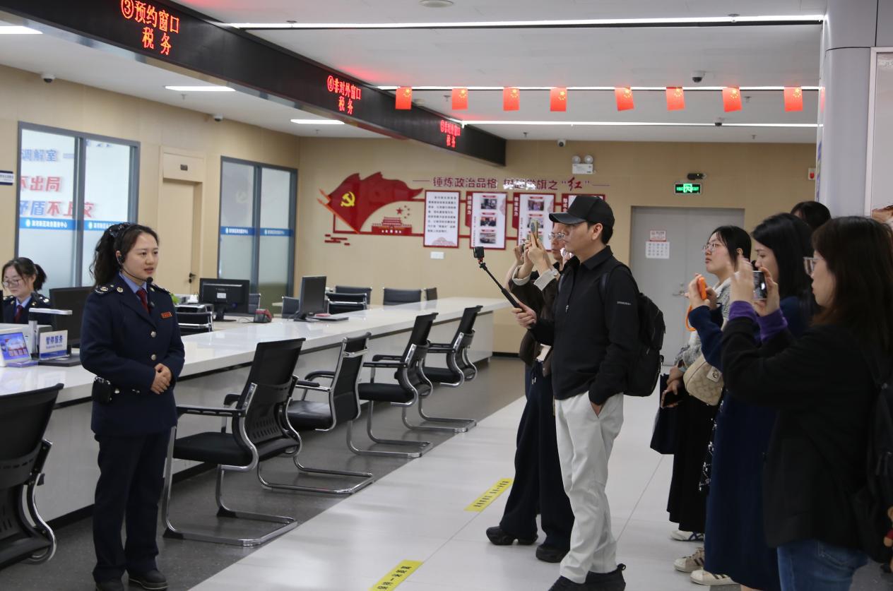 企业走访结束后,媒体采访团前往荆门市漳河新区办税服务厅,实地体验智慧税务赋能下的办税便捷。
