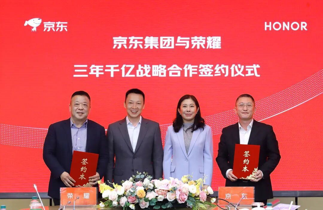 赛场夺冠之外,荣耀与京东的深度合作早已为世人瞩目。近日,双方签署战略合作协议,明确未来三年荣耀在京东全渠道销售额突破1000亿元,围绕产品共创、用户共营、生态共享三大维度深化合作,加速AI终端普及,并拓宽政企、工业、健康、保险、国际等领域合作边界,实现多产业深度融合。
