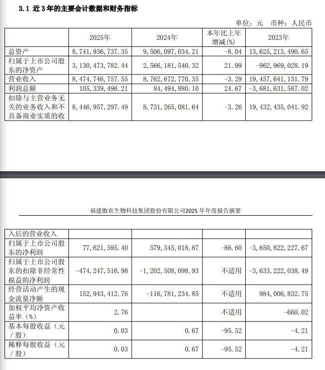 与此同时,傲农生物发布的业绩报告显示,2025年度归属于上市公司股东的净利润同比下降86.6%,营业收入同比下降3.29%。