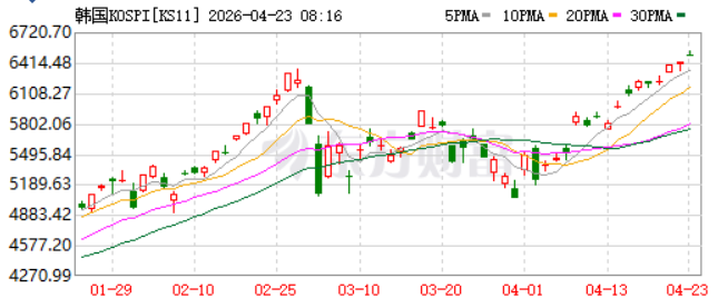 韩国KOSPI指数涨幅超1%,创下历史新高。