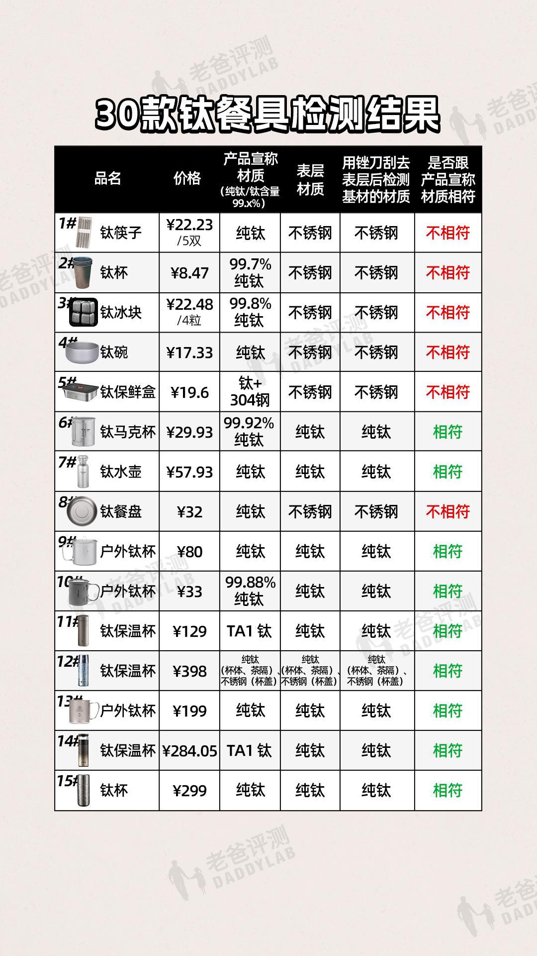 近年来,纯钛餐具、纯钛水杯凭借轻便耐腐蚀、健康无毒、户外便携等宣传卖点,迅速成为居家、户外出行热门日用品,各大电商平台、短视频直播间销量持续走高。商家纷纷宣称纯钛材质医用级安全、天然抑菌、不生锈不串味,不少消费者愿意以高于普通不锈钢餐具的价格选购。然而网红钛制品市场乱象丛生,材质造假、虚假宣传问题十分突出。近日,老爸评测针对市面主流网红钛杯、钛餐具开展专项对比检测,一次性购入30款热销产品进行拆解化验,检测结果令人忧虑:实测样品中超60%并非纯钛材质,属于假冒产品,部分假货还存在重金属迁移超标严重等安全风险。