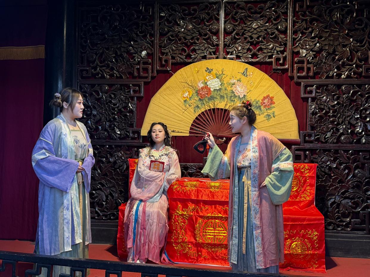 4月2日,在天津杨柳青镇石家大院,沉浸式实景演出《吉祥如意》的演员们正在彩排。新华社记者宋瑞 摄