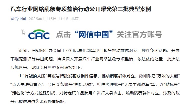 汽车行业网络乱象专项整治行动公开曝光第三批典型案例网信中国微信公众号 6天前