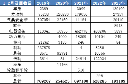 中国网汽车3月6日讯全国乘用车市场信息联席会秘书长崔东树日前通过微信公众号发布《2023年1-2月全国汽车市场召回状态跟踪》指出:2023年1-2月实施召回有21批次事件,总共召回19万台;相对去年同期的数量下降69%,外资企业召回较多,自主召回问题减少较多。新能源车召回不多,传统车召回没有出现新的趋势性事件。