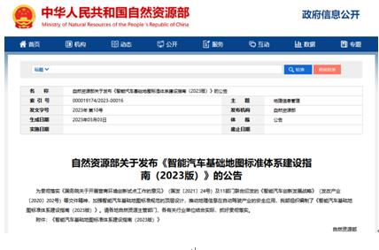 中国经济网北京3月9日讯(记者殷俊红)记者从自然资源部获悉,为加强智能汽车基础地图标准规范的顶层设计,全面推动智能汽车基础地图标准体系制定与产业健康有序发展,自然资源部组织编制了《智能汽车基础地图标准体系建设指南(2023版)》(以下简称《建设指南》),用于指导相关标准研制。